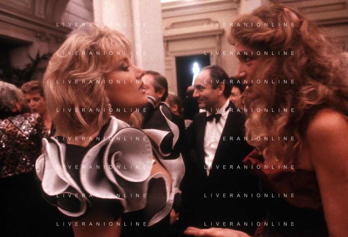 DIAP-RETROSPETTIVA BARBARA BOUCHET ATTRICE NELLA FOTO BARBARA BOUCHET CON IL MARITO LUIGI BORGHESE E MARIA PIA FANFANI A MILANO NELL'ANNO 1983 AG ALDO LIVERANI SAS