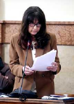 IMOLA 24 04 2025 CONSIGLIO COMUNALE ORDINE DEL GIORNO 25 APRILE FESTA DELLA LIBERAZIONE NELLA FOTO MARIA TERESA MERLI FRATELLI D'ITALIA INTERVENTO SUL TEMA 25 APRILE ©SANNA - AGENZIA ALDO LIVERANI SAS