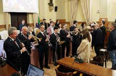 IMOLA 24 04 2025 CONSIGLIO COMUNALE ORDINE DEL GIORNO 25 APRILE FESTA DELLA LIBERAZIONE NELLA FOTO L'INNO ITALIANO SUONATO DALLA BANDA MUSICALE DI IMOLA ©SANNA - AGENZIA ALDO LIVERANI SAS
