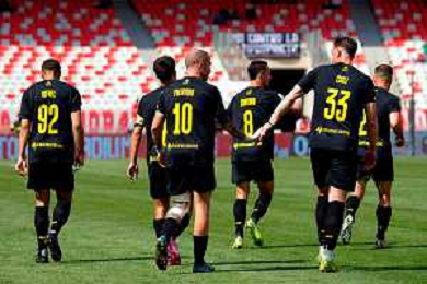 TVEM April 25, 2025 Bari, Italy - SSC Bari vs Modena FC 1912 - Italian soccer serie B 2024/25 - San Nicola Stadium. In the pic: Players of Modena FC 1912 celebrates after scoring a goal ©TVEM Emmanuele Mastrodonato - AGENZIA ALDO LIVERANI SAS