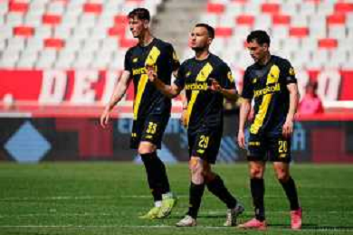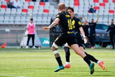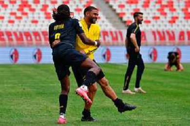 TVEM April 25, 2025 Bari, Italy - SSC Bari vs Modena FC 1912 - Italian soccer serie B 2024/25 - San Nicola Stadium. In the pic: Gregoire Defrel of Modena FC 1912 and Gady-Pierre Beyuku of Modena FC 1912 celebrates the victory ©TVEM Emmanuele Mastrodonato - AGENZIA ALDO LIVERANI SAS