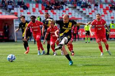 TVEM April 25, 2025 Bari, Italy - SSC Bari vs Modena FC 1912 - Italian soccer serie B 2024/25 - San Nicola Stadium. In the pic: Antonio Palumbo of Modena FC 1912 score the goal on penalty ©TVEM Emmanuele Mastrodonato - AGENZIA ALDO LIVERANI SAS