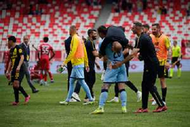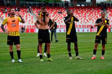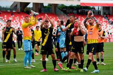 TVEM April 25, 2025 Bari, Italy - SSC Bari vs Modena FC 1912 - Italian soccer serie B 2024/25 - San Nicola Stadium. In the pic: players of Modena FC 1912 celebrates the victory ©TVEM Emmanuele Mastrodonato - AGENZIA ALDO LIVERANI SAS