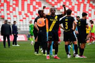TVEM April 25, 2025 Bari, Italy - SSC Bari vs Modena FC 1912 - Italian soccer serie B 2024/25 - San Nicola Stadium. In the pic: Gady-Pierre Beyuku of Modena FC 1912 celebrates the victory ©TVEM Emmanuele Mastrodonato - AGENZIA ALDO LIVERANI SAS