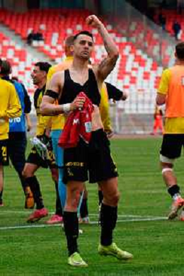 TVEM April 25, 2025 Bari, Italy - SSC Bari vs Modena FC 1912 - Italian soccer serie B 2024/25 - San Nicola Stadium. In the pic: Giuseppe Caso of Modena FC 1912 celebrates the victory ©TVEM Emmanuele Mastrodonato - AGENZIA ALDO LIVERANI SAS