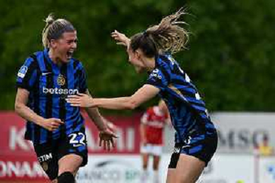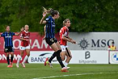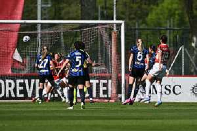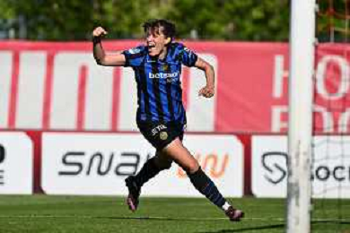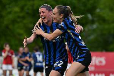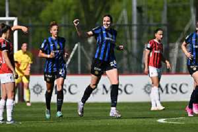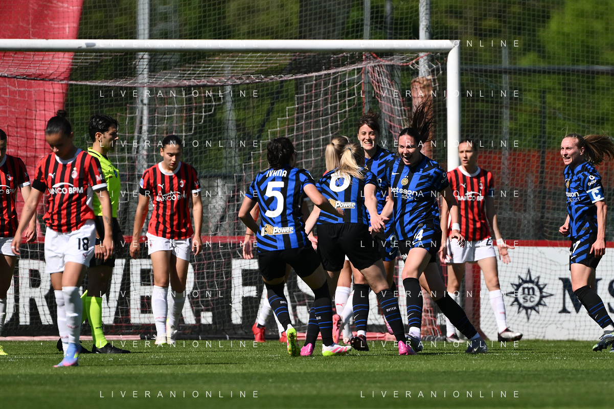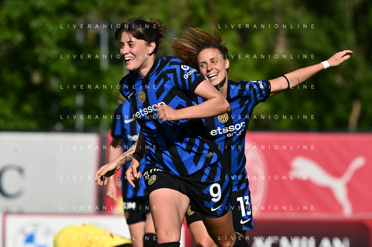 TVRG Milan vs Inter nella foto Marija Ana Milinkovic (Inter) a DX coperta segna il gol dell'1 a 0 Milano 25-04-2025 Centro Sportivo Peppino Vismara Campionato Serie A Femminile eBay - 8a giornata Poule Scudetto foto Roberto Garavaglia/Agenzia Aldo Liverani sas