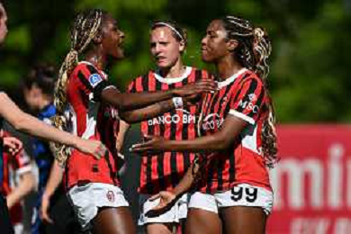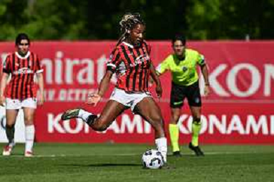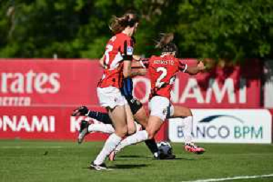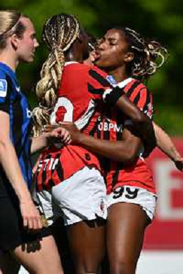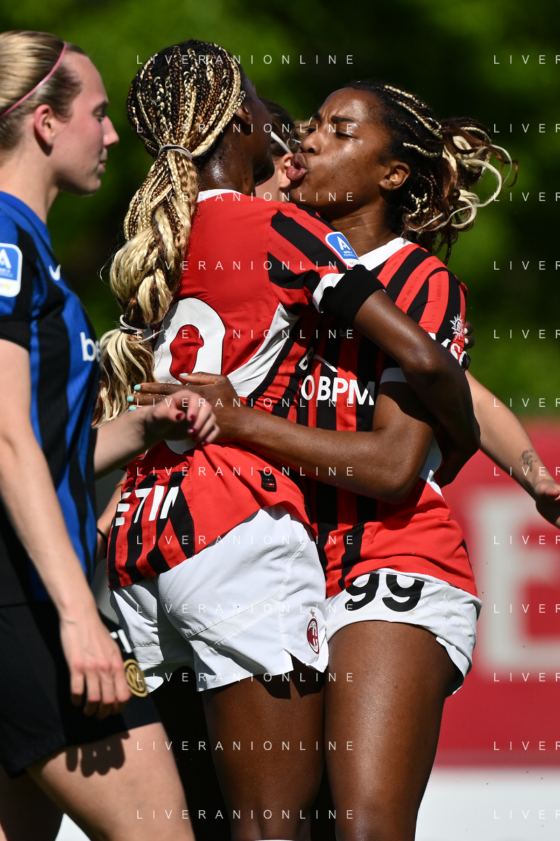 TVRG Milan vs Inter nella foto Chantè-Mary Dompig (Milan) segna il gol dell'1 a 1 Milano 25-04-2025 Centro Sportivo Peppino Vismara Campionato Serie A Femminile eBay - 8a giornata Poule Scudetto foto Roberto Garavaglia/Agenzia Aldo Liverani sas