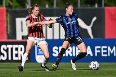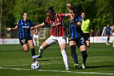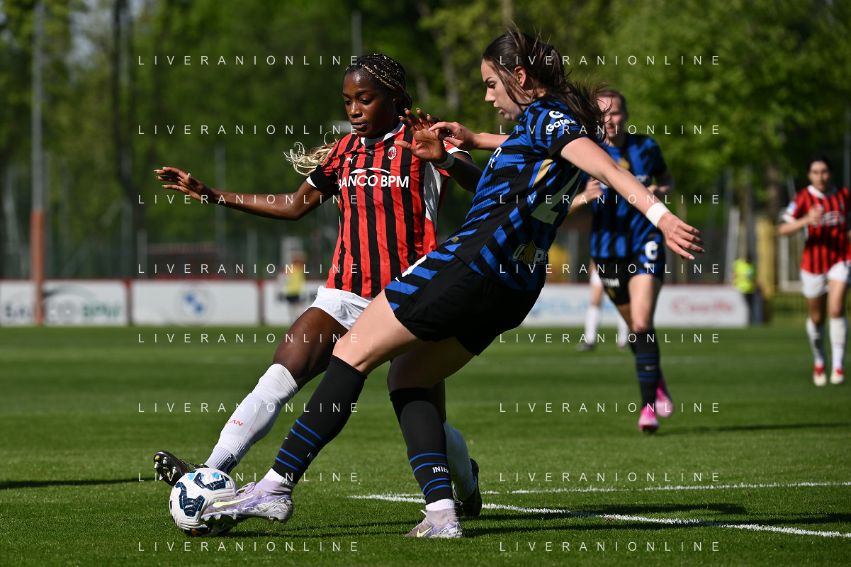 TVRG Milan vs Inter nella foto Andres Sanz (Inter) e Evelyn Ijeh (Milan) Milano 25-04-2025 Centro Sportivo Peppino Vismara Campionato Serie A Femminile eBay - 8a giornata Poule Scudetto foto Roberto Garavaglia/Agenzia Aldo Liverani sas