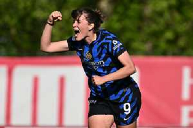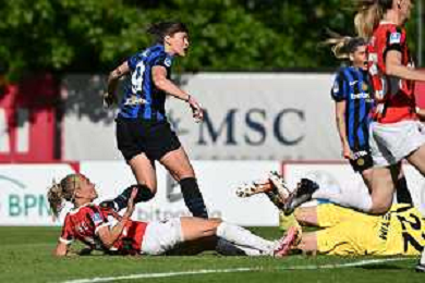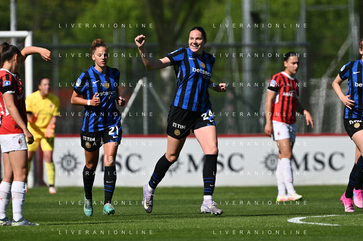 TVRG Milan vs Inter nella foto Tessa Wullaert (Inter) segna il gol del 3 a 1 Milano 25-04-2025 Centro Sportivo Peppino Vismara Campionato Serie A Femminile eBay - 8a giornata Poule Scudetto foto Roberto Garavaglia/Agenzia Aldo Liverani sas