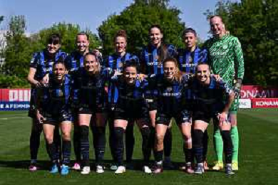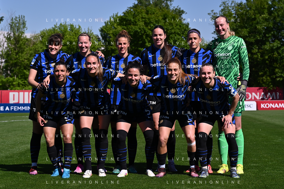 TVRG Milan vs Inter nella foto formazione Inter, in piedi da SX Elisa Polli, Irene Santi, Martina Tomaselli, Marija Ana Milinkovic, Olivia Schough e Cecilia Ran Runarsdottir; in basso da SX Elisa Bartoli, Tessa Wullaert, Ivana Andres Sanz, Beatrice Merlo e Henrietta Csiszar Milano 25-04-2025 Centro Sportivo Peppino Vismara Campionato Serie A Femminile eBay - 8a giornata Poule Scudetto foto Roberto Garavaglia/Agenzia Aldo Liverani sas