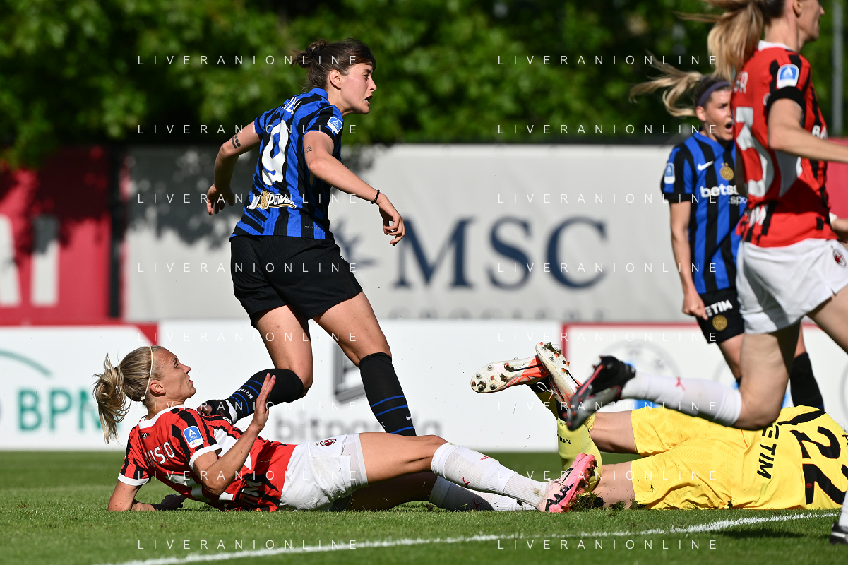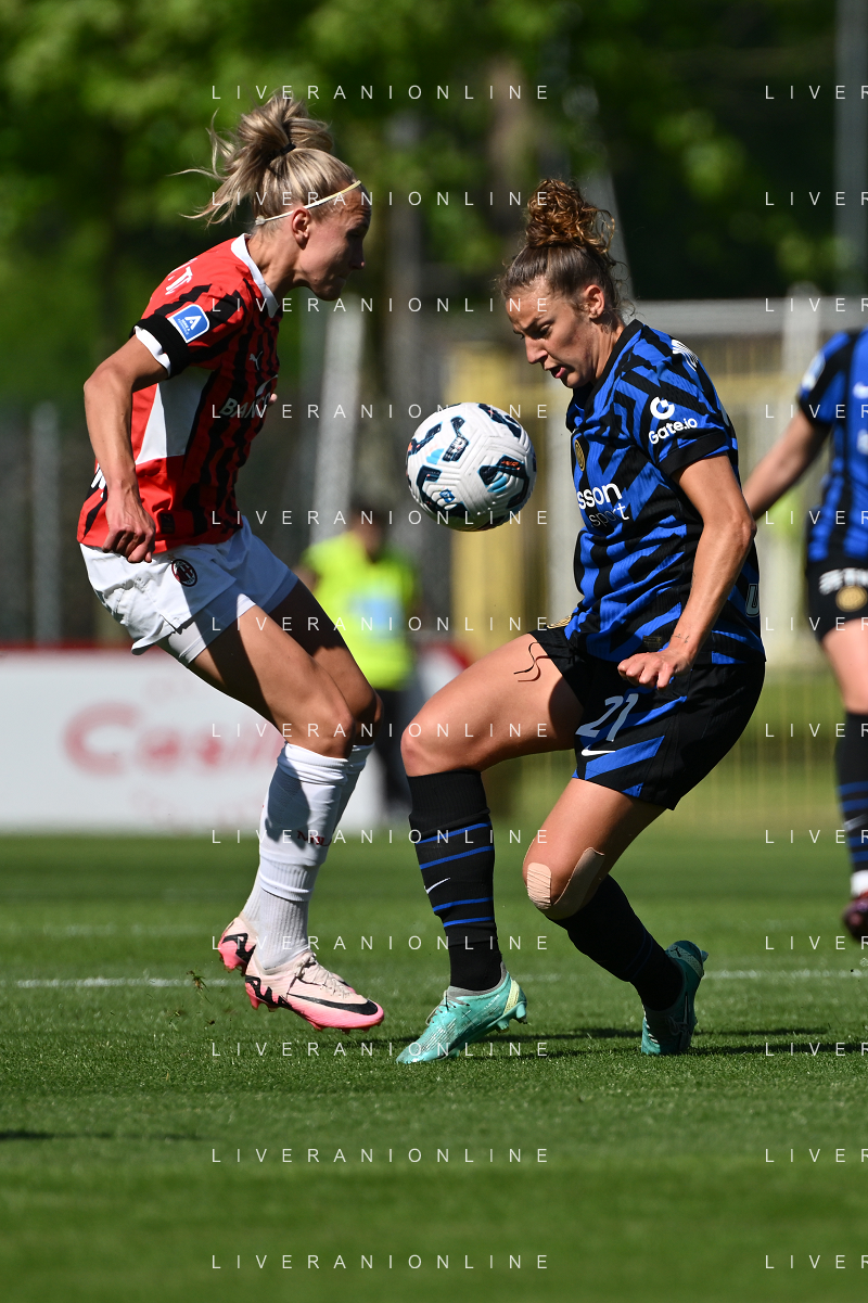 TVRG Milan vs Inter nella foto Julie Piga (Milan) e Tessa Wullaert (Inter) Milano 25-04-2025 Centro Sportivo Peppino Vismara Campionato Serie A Femminile eBay - 8a giornata Poule Scudetto foto Roberto Garavaglia/Agenzia Aldo Liverani sas