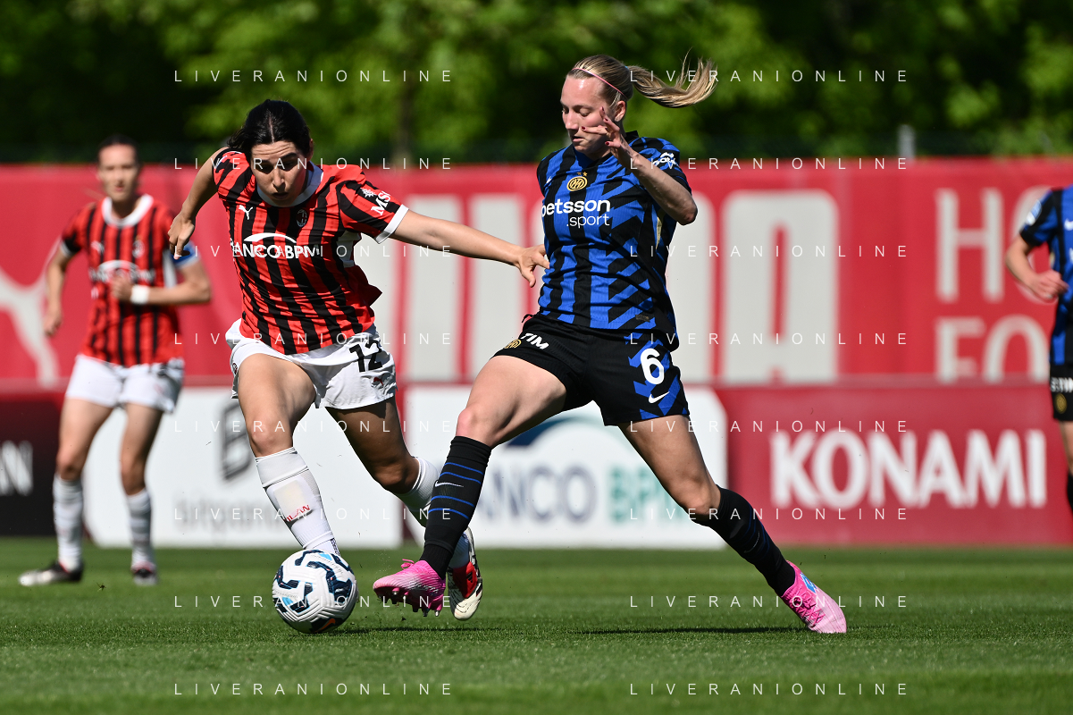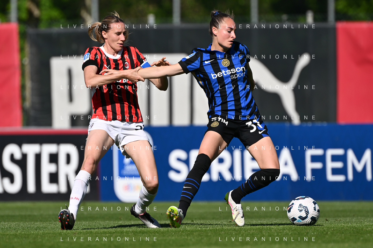 TVRG Milan vs Inter nella foto Emma Koivisto (Milan) e Martina Tomaselli (Inter) Milano 25-04-2025 Centro Sportivo Peppino Vismara Campionato Serie A Femminile eBay - 8a giornata Poule Scudetto foto Roberto Garavaglia/Agenzia Aldo Liverani sas