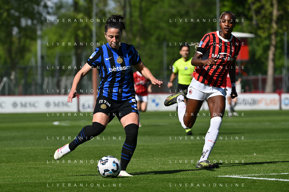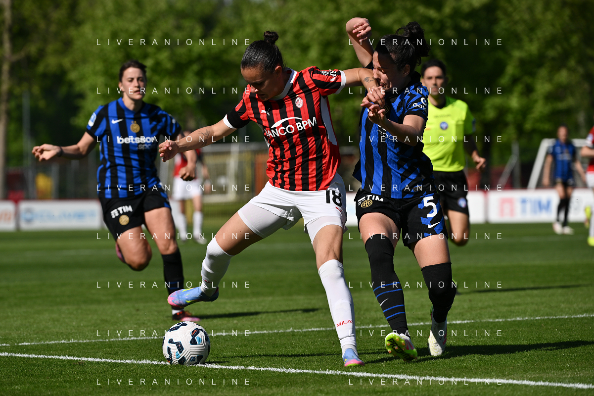 TVRG Milan vs Inter nella foto Marta Mascarello (Milan) e Irene Santi (Inter) Milano 25-04-2025 Centro Sportivo Peppino Vismara Campionato Serie A Femminile eBay - 8a giornata Poule Scudetto foto Roberto Garavaglia/Agenzia Aldo Liverani sas