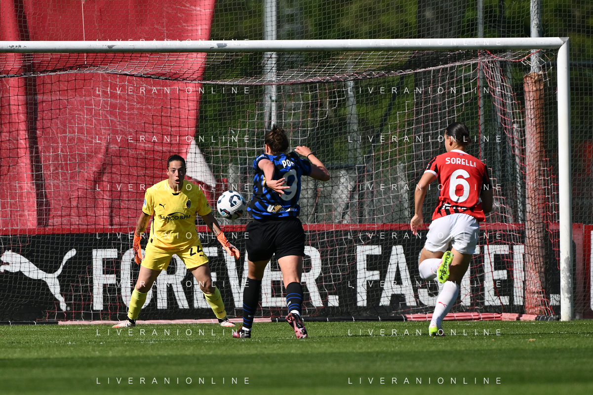 TVRG Milan vs Inter nella foto Elisa Polli (Inter) occasione da gol Milano 25-04-2025 Centro Sportivo Peppino Vismara Campionato Serie A Femminile eBay - 8a giornata Poule Scudetto foto Roberto Garavaglia/Agenzia Aldo Liverani sas