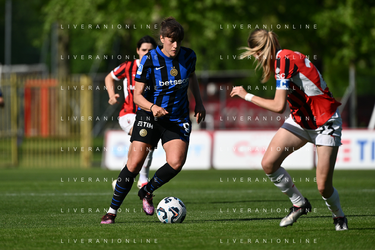 TVRG Milan vs Inter nella foto Elisa Polli (Inter) inizia l'azione personale che la porta a segnare il gol del 2 a 1 Milano 25-04-2025 Centro Sportivo Peppino Vismara Campionato Serie A Femminile eBay - 8a giornata Poule Scudetto foto Roberto Garavaglia/Agenzia Aldo Liverani sas