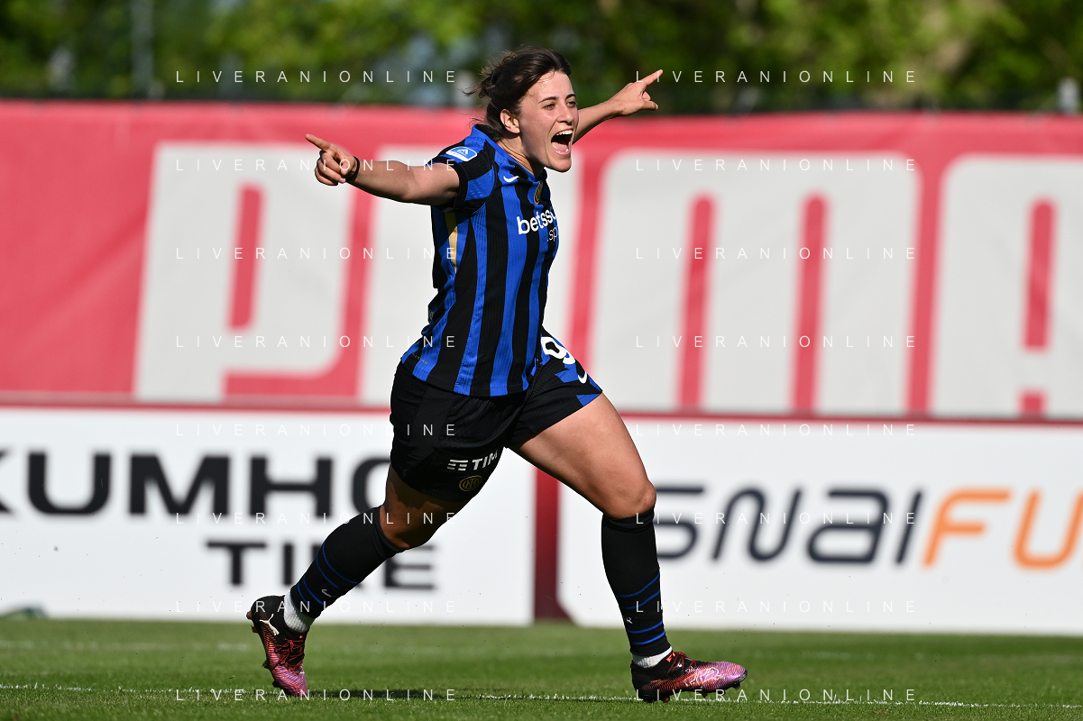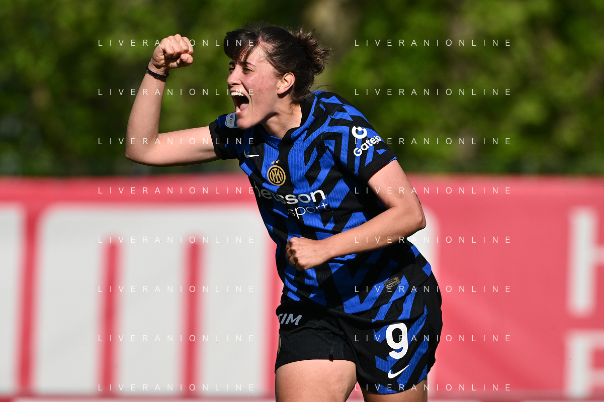 TVRG Milan vs Inter nella foto Elisa Polli (Inter) esultanza dopo il gol del 2 a 1 Milano 25-04-2025 Centro Sportivo Peppino Vismara Campionato Serie A Femminile eBay - 8a giornata Poule Scudetto foto Roberto Garavaglia/Agenzia Aldo Liverani sas