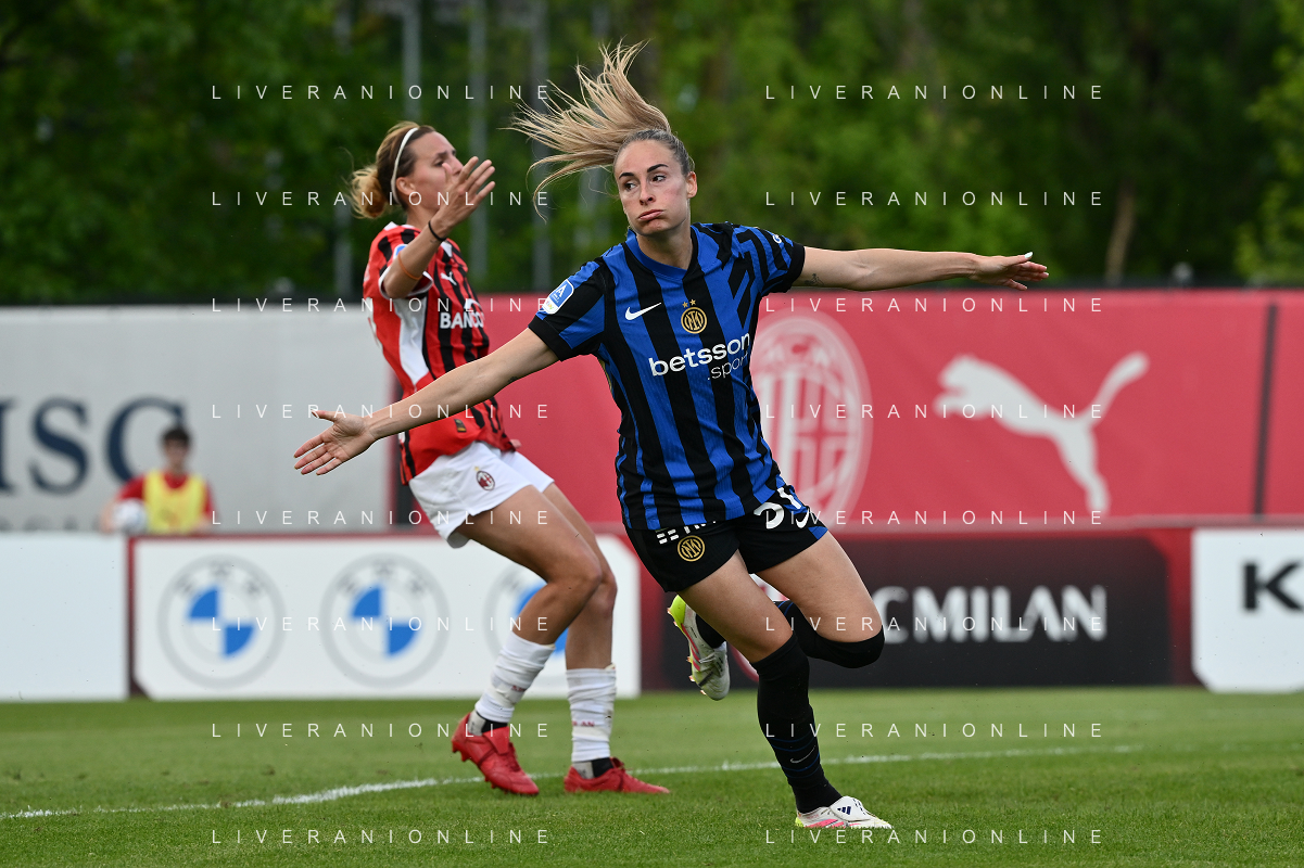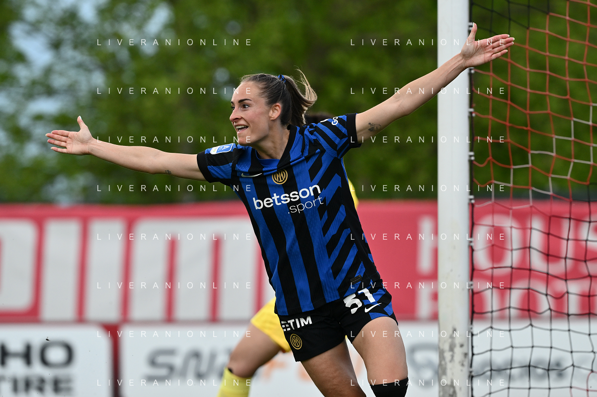TVRG Milan vs Inter nella foto Tessa Wullaert (Inter) esultanza dopo il gol del 3 a 1 Milano 25-04-2025 Centro Sportivo Peppino Vismara Campionato Serie A Femminile eBay - 8a giornata Poule Scudetto foto Roberto Garavaglia/Agenzia Aldo Liverani sas