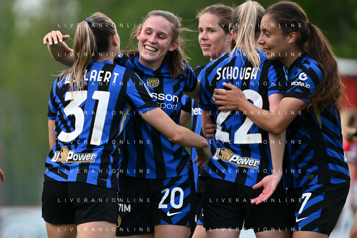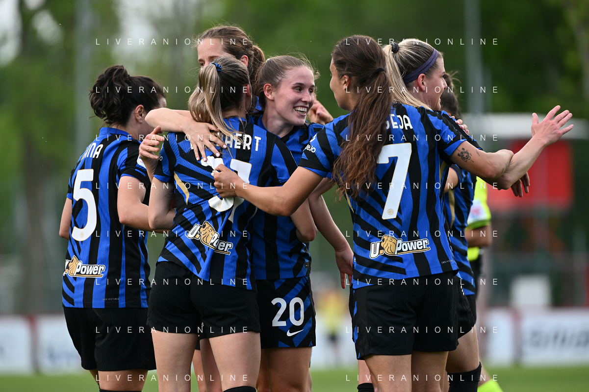 TVRG Milan vs Inter nella foto giocatrici Inter esultanza dopo il gol dell'1 a 0 Milano 25-04-2025 Centro Sportivo Peppino Vismara Campionato Serie A Femminile eBay - 8a giornata Poule Scudetto foto Roberto Garavaglia/Agenzia Aldo Liverani sas