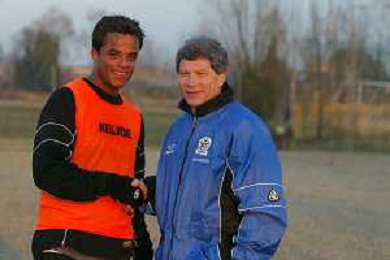 DIG- ALLENAMENTO VENEZIA CALCIO 27 GENNAIO 2003 NELLA FOTO Alessandro Faiolhe Amantino MANCINI CON L’ALLENATORE GIANFRANCO BELLOTTO ©GARBUIO - AGENZIA ALDO LIVERANI SAS