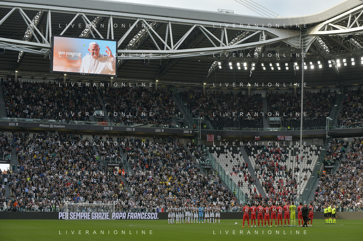 Torino 27.04.2025 Allianz Stadium @Manuela Viganti /Ag. Aldo Liverani sas Juventus vs Monza Campionato Calcio Serie A Enilive 2024/2025 34a giornata Nella foto: minuto di silenzio per la scomparsa di papa francesco