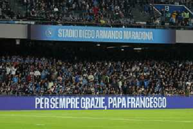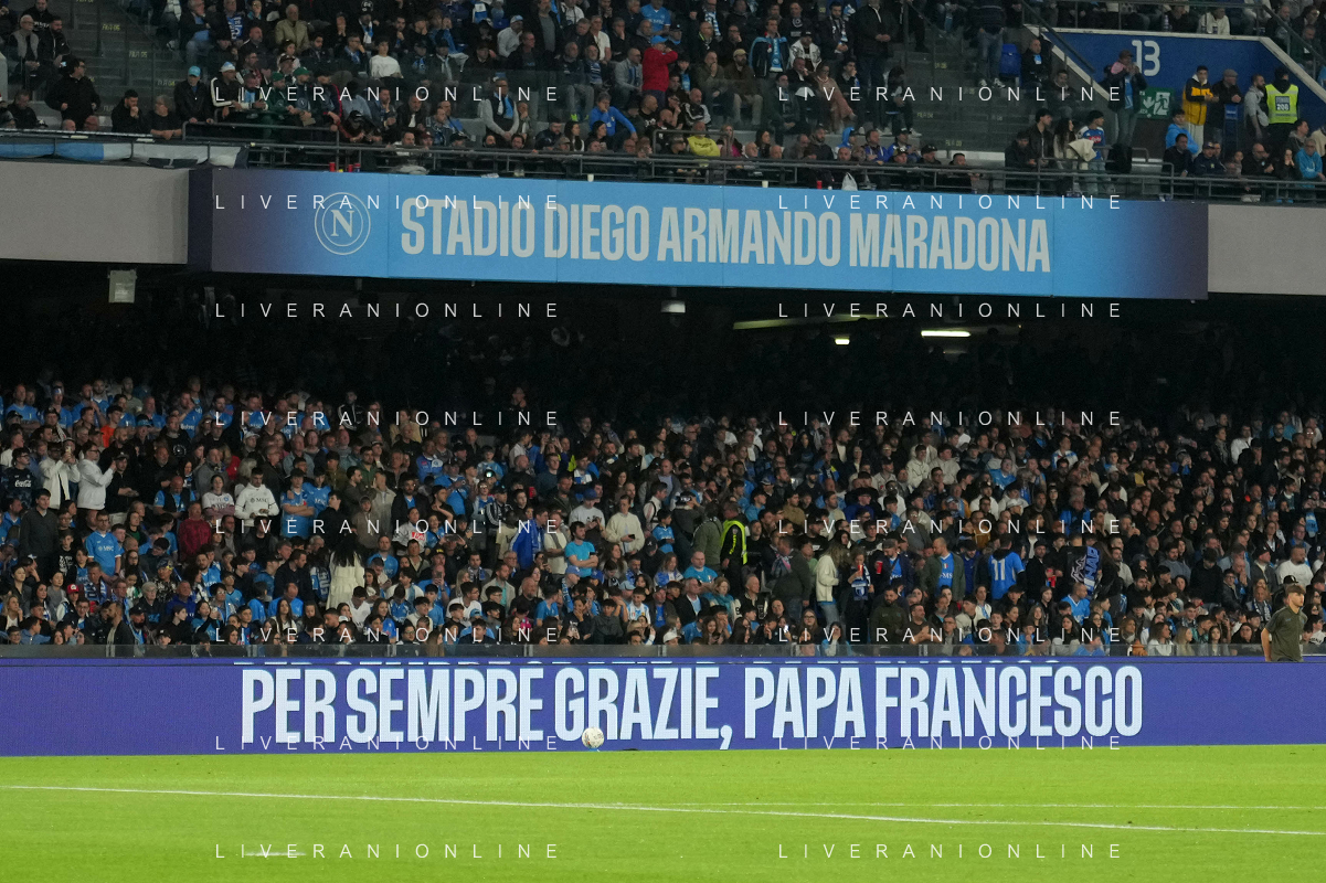Napoli -Torino Campionato Calcio Serie A 27.04.2025 nella foto: Striscione dei tifosi per Papa Francesco Foto Mosca, Ag.Liverani- AGENZIA ALDO LIVERANI SAS