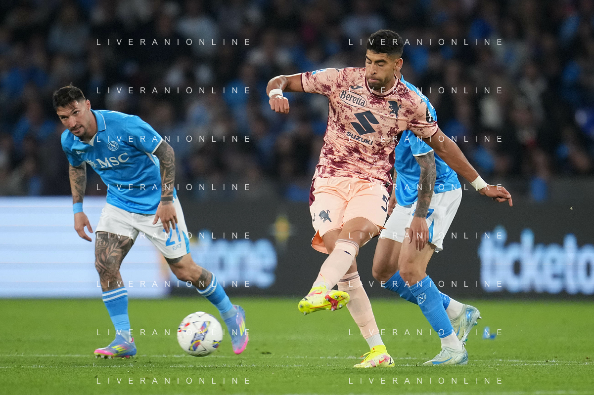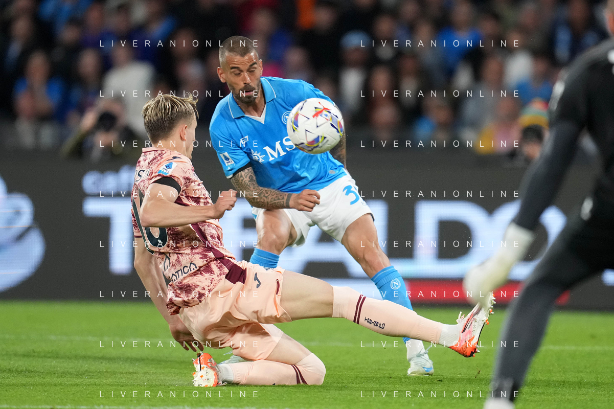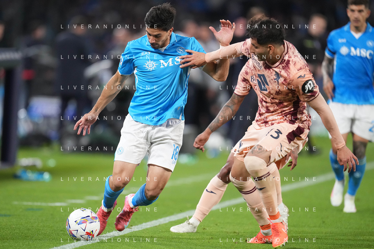 Napoli -Torino Campionato Calcio Serie A 27.04.2025 nella foto: Leonardo Spinazzola, Marcus Pedersen Foto Mosca, Ag.Liverani- AGENZIA ALDO LIVERANI SAS