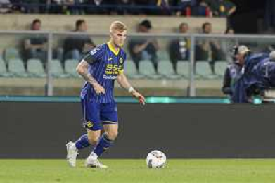 TVEM April 19, 2025 Lecce, Italy - US Lecce vs Como 1907 - Italian soccer serie A 2024/25 - Via Del Mare Stadium. In the pic: Tasos Douvikas of Como 1907 foto emmanuele mastrodonato-ag aldo liverani sas