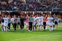 TVEM April 19, 2025 Lecce, Italy - US Lecce vs Como 1907 - Italian soccer serie A 2024/25 - Via Del Mare Stadium. In the pic: coach Cesc Fabregas of Como 1907 and players of Como 1907 celebrates the victory foto emmanuele mastrodonato-ag aldo liverani sas