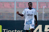 TVEM April 19, 2025 Lecce, Italy - US Lecce vs Como 1907 - Italian soccer serie A 2024/25 - Via Del Mare Stadium. In the pic: Assane Diao of Como 1907 celebrates after scoring a goal foto emmanuele mastrodonato-ag aldo liverani sas