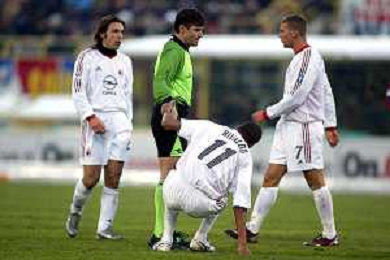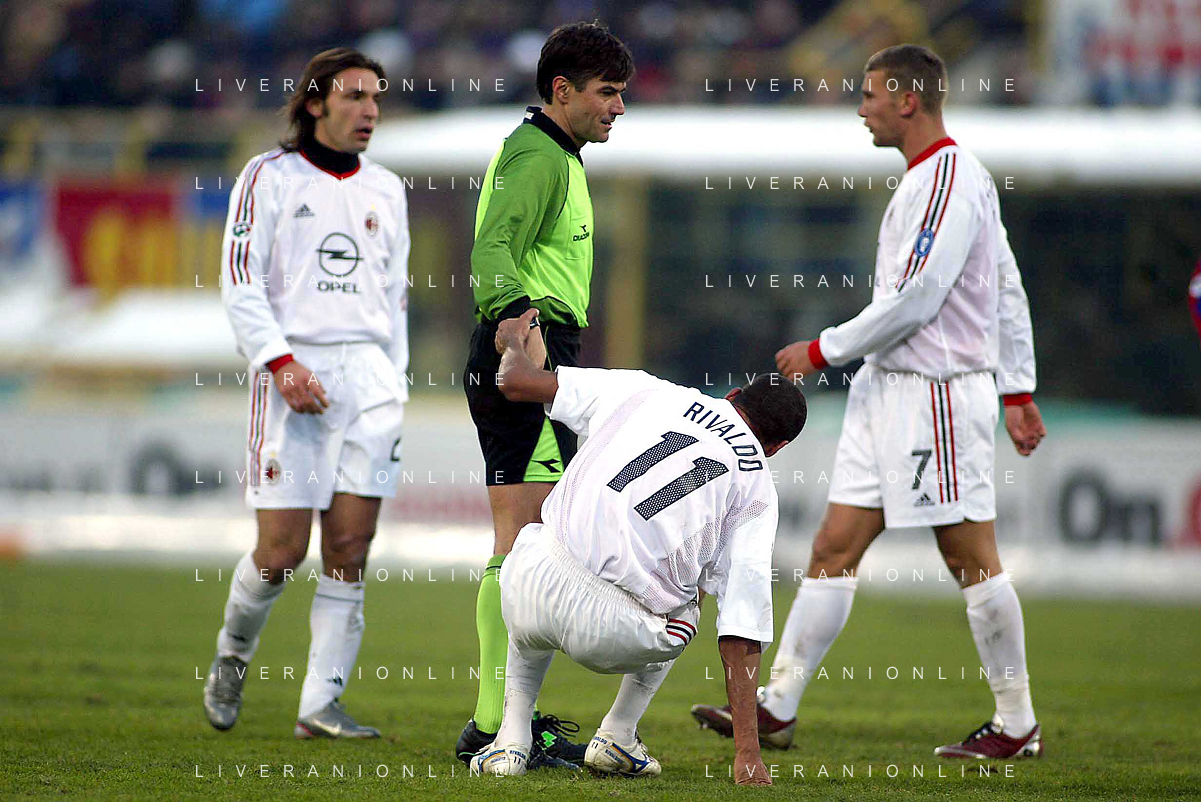DIG- BOLOGNA - MILAN CAMPIONATO CALCIO SERIE A 12 GENNAIO 2003 - RISULTATO 0-2 NELLA FOTO L’ARBITRO TRENTALANGE CON RIVALDO AGENZIA ALDO LIVERANI SAS