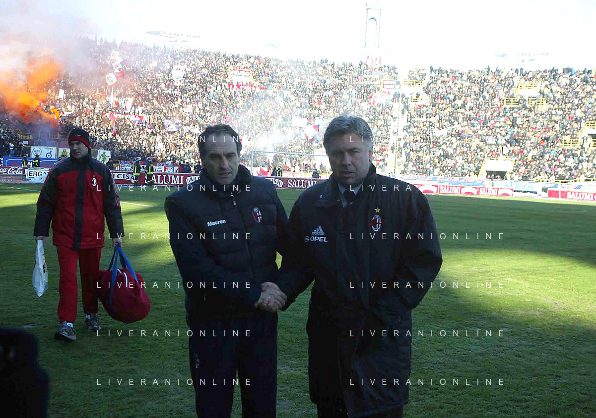 DIG- BOLOGNA - MILAN CAMPIONATO CALCIO SERIE A 12 GENNAIO 2003 - RISULTATO 0-2 NELLA FOTO SILVANO RAMACCIONI E ANCELOTTI CARLO AGENZIA ALDO LIVERANI SAS
