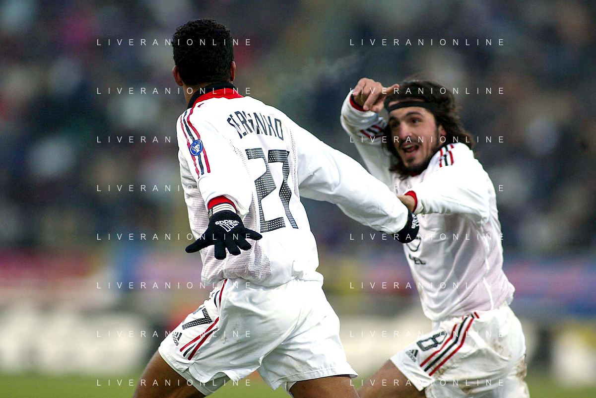 DIG- BOLOGNA - MILAN CAMPIONATO CALCIO SERIE A 12 GENNAIO 2003 - RISULTATO 0-2 NELLA FOTO ESULTANZA DI SERGINHO E GENNARO GATTUSO AGENZIA ALDO LIVERANI SAS