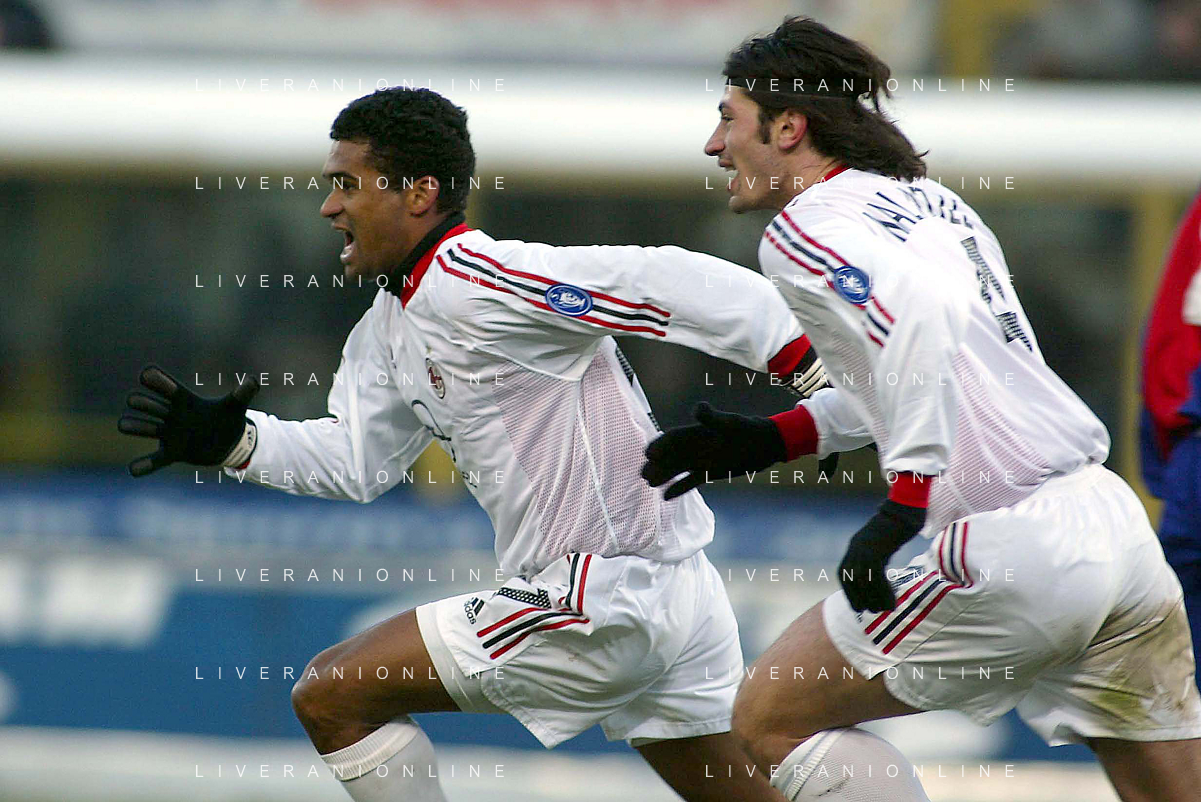 DIG- BOLOGNA - MILAN CAMPIONATO CALCIO SERIE A 12 GENNAIO 2003 - RISULTATO 0-2 NELLA FOTO ESULTANZA DI SERGINHO E KAKHA KALADZE AGENZIA ALDO LIVERANI SAS