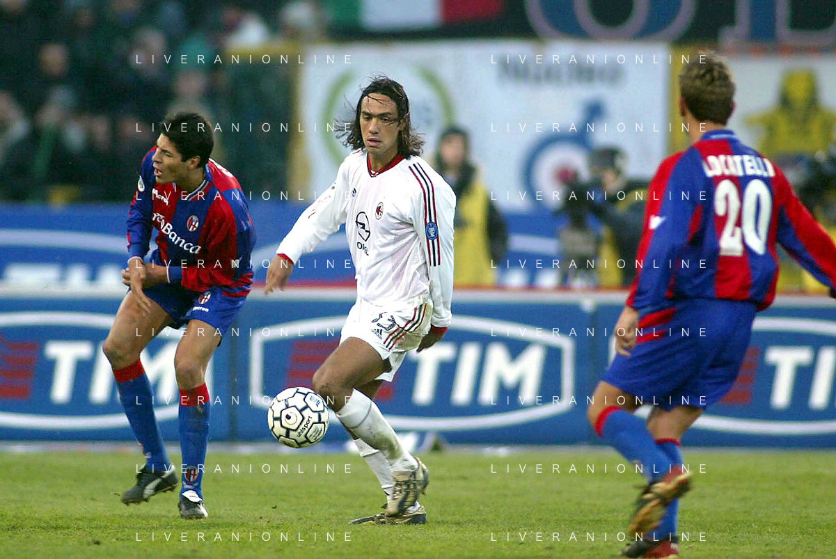 DIG- BOLOGNA - MILAN CAMPIONATO CALCIO SERIE A 12 GENNAIO 2003 - RISULTATO 0-2 NELLA FOTO PAOLO MALDINI E JULIO CRUZ AGENZIA ALDO LIVERANI SAS