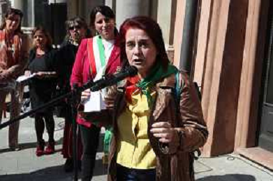 IMOLA 29 04 2025 IN PIAZZA MATTEOTTI si e' tenuta una cerimonia di commemorazione di Maria Zanotti e Livia Venturini, davanti alla lapide loro dedicata NELLA FOTO VICE SINDACO ELISA SPADA FOTO GIANNI SANNA-AG ALDO LIVERANI SAS