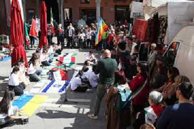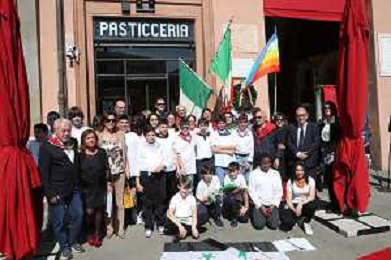 IMOLA 29 04 2025 IN PIAZZA MATTEOTTI si e' tenuta una cerimonia di commemorazione di Maria Zanotti e Livia Venturini, davanti alla lapide loro dedicata NELLA FOTO la classe 3 della scuola secondaria di primo grado Andrea Costa e la professoressa Maria Di Ciaula, nell'ambito del progetto 'Quando un posto diventa un luogo FOTO GIANNI SANNA-AG ALDO LIVERANI SAS