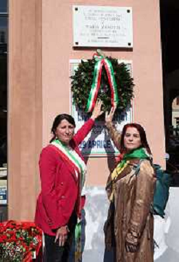 IMOLA 29 04 2025 IN PIAZZA MATTEOTTI si e' tenuta una cerimonia di commemorazione di Maria Zanotti e Livia Venturini, davanti alla lapide loro dedicata NELLA FOTO VICE SINDACO ELISA SPADA E ANNA PARIANI ANPI FOTO GIANNI SANNA-AG ALDO LIVERANI SAS