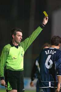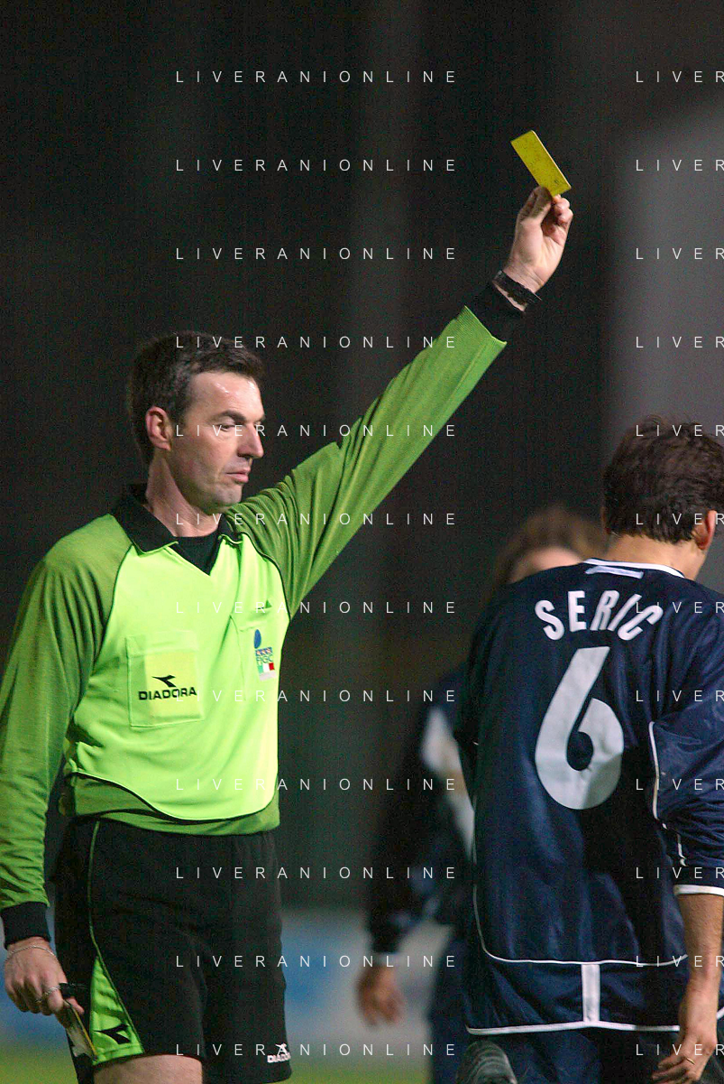 DIG- BRESCIA - LAZIO CAMPIONATO CALCIO SERIE A 11 GENNAIO 2003 - RISULTATO 0-0 NELLA FOTO ARBITRO FARINA STEFANO ESTRAE IL CARTELLINO GIALLO PER L’AMMONIZIONE DI SERIC AGENZIA ALDO LIVERANI SAS