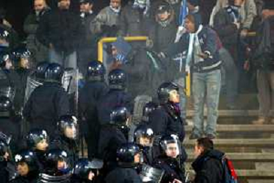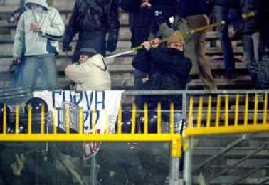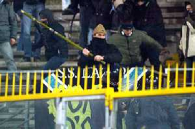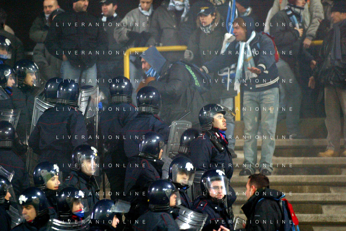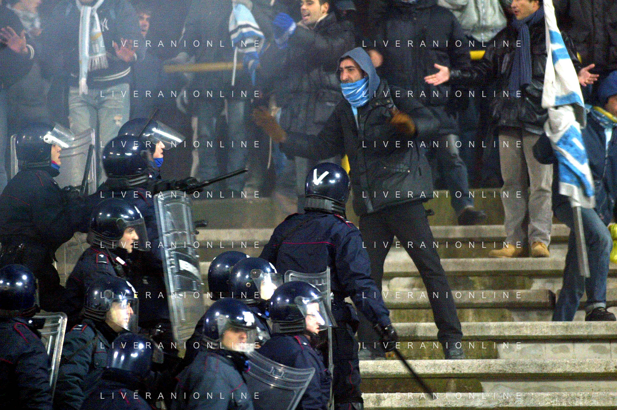 DIG- BRESCIA - LAZIO CAMPIONATO CALCIO SERIE A 11 GENNAIO 2003 - RISULTATO 0-0 NELLA FOTO SCONTRI TRA TIFOSI E POLIZIA SUGLI SPALTI AGENZIA ALDO LIVERANI SAS