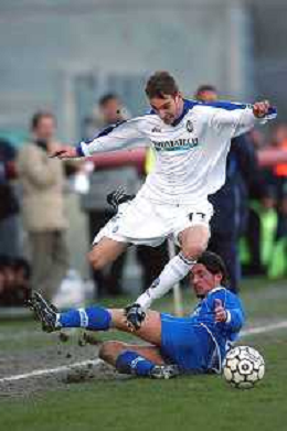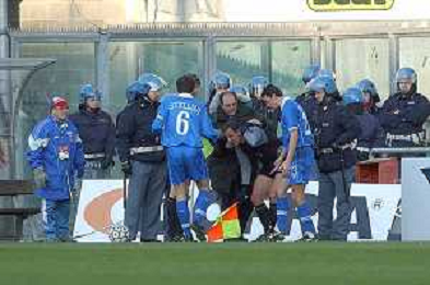 DIG- COMO - ATALANTA CAMPIONATO CALCIO SERIE A 12 GENNAIO 2003 - RISULTATO 1-1 NELLA FOTO IL GUARDALINEE PAPI COLPITO DALLA PALLA DI NEVE AGENZIA ALDO LIVERANI SAS