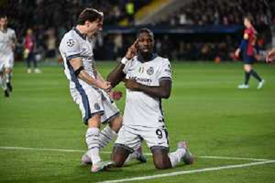 TVRG Barcellona vs Inter nella foto giocatori Inter esultanza dopo il gol dell'1 a 0 Marcus Thuram Barcellona (SPA) 30-04-2025 Stadio Olimpico - Lluis Companys UEFA Champions League - semifinali gara di andata foto Roberto Garavaglia/Agenzia Aldo Liverani sas - AGENZIA ALDO LIVERANI SAS