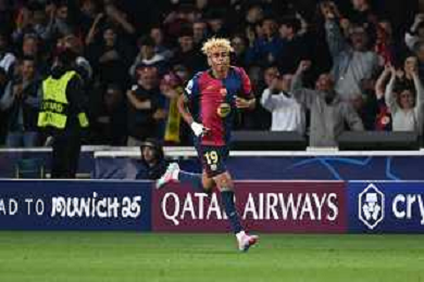 TVRG Barcellona vs Inter nella foto Lamine Yamal (Barcellona) esultanza dopo il gol dell'1 a 2 Barcellona (SPA) 30-04-2025 Stadio Olimpico - Lluis Companys UEFA Champions League - semifinali gara di adata foto Roberto Garavaglia/Agenzia Aldo Liverani sas - AGENZIA ALDO LIVERANI SAS