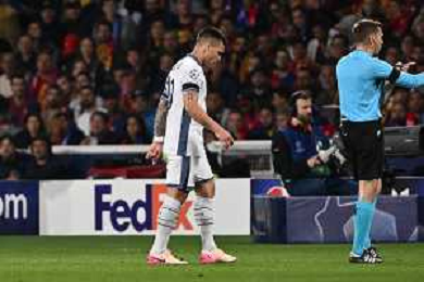 TVRG Barcellona vs Inter nella foto Lautaro Martinez (Inter) infortunato Barcellona (SPA) 30-04-2025 Stadio Olimpico - Lluis Companys UEFA Champions League - semifinali gara di adata foto Roberto Garavaglia/Agenzia Aldo Liverani sas - AGENZIA ALDO LIVERANI SAS