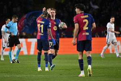 TVRG Barcellona vs Inter nella foto Raphinha Raphael Dias Belloli (Barcellona) e Frenkie de Jong (Barcellona) esultanza dopo il gol del 3 a 3 Barcellona (SPA) 30-04-2025 Stadio Olimpico - Lluis Companys UEFA Champions League - semifinali gara di adata foto Roberto Garavaglia/Agenzia Aldo Liverani sas - AGENZIA ALDO LIVERANI SAS