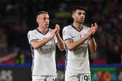 TVRG Barcellona vs Inter nella foto Davide Frattesi (Inter) SX e Mehdi Taremi (Inter) DX Barcellona (SPA) 30-04-2025 Stadio Olimpico - Lluis Companys UEFA Champions League - semifinali gara di adata foto Roberto Garavaglia/Agenzia Aldo Liverani sas - AGENZIA ALDO LIVERANI SAS