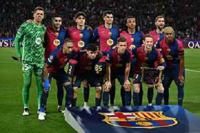 TVRG Barcellona vs Inter nella foto formazione Barcellona, in piedi da SX Wojciech Szczesny, Ferran Torres, Pau Cubarsi, Gerard Martin, Jules Kounde' e Inigo Martinez; in basso da SX Raphinha Raphael Dias Belloli, Pedri Pedro Gonzalez Lopez, Dani Olmo, Frenkie de Jong e Lamine Yamal Barcellona (SPA) 30-04-2025 Stadio Olimpico - Lluis Companys UEFA Champions League - semifinali gara di adata foto Roberto Garavaglia/Agenzia Aldo Liverani sas - AGENZIA ALDO LIVERANI SAS