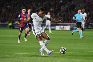 TVRG Barcellona vs Inter nella foto Denzel Dumfries (Inter) Barcellona (SPA) 30-04-2025 Stadio Olimpico - Lluis Companys UEFA Champions League - semifinali gara di andata foto Roberto Garavaglia/Agenzia Aldo Liverani sas - AGENZIA ALDO LIVERANI SAS