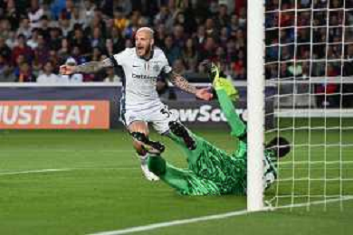 TVRG Barcellona vs Inter nella foto Marcus Thuram (Inter) segna il gol dell'1 a 0 Barcellona (SPA) 30-04-2025 Stadio Olimpico - Lluis Companys UEFA Champions League - semifinali gara di andata foto Roberto Garavaglia/Agenzia Aldo Liverani sas - AGENZIA ALDO LIVERANI SAS