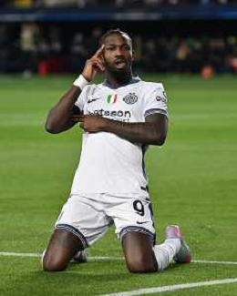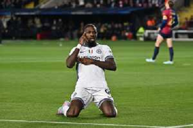TVRG Barcellona vs Inter nella foto Marcus Thuram (Inter) esultanza dopo il gol dell'1 a 0 Barcellona (SPA) 30-04-2025 Stadio Olimpico - Lluis Companys UEFA Champions League - semifinali gara di andata foto Roberto Garavaglia/Agenzia Aldo Liverani sas - AGENZIA ALDO LIVERANI SAS