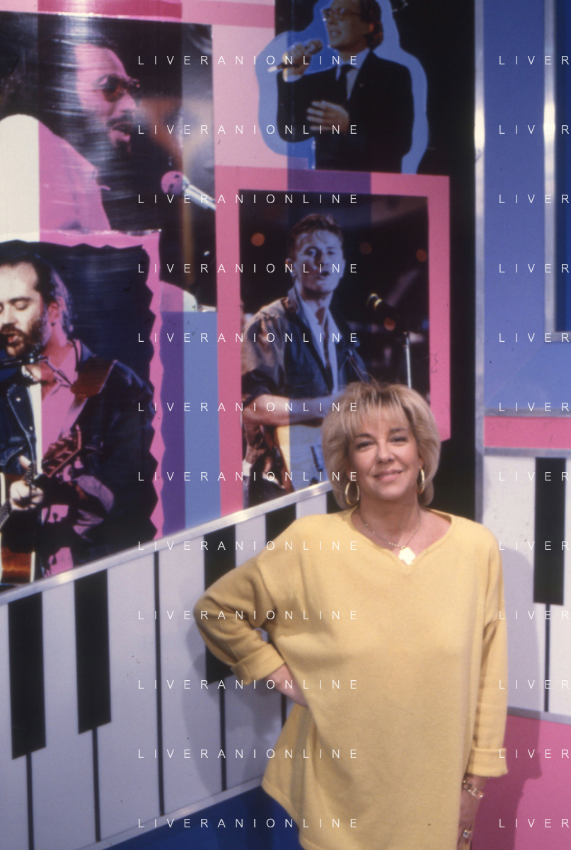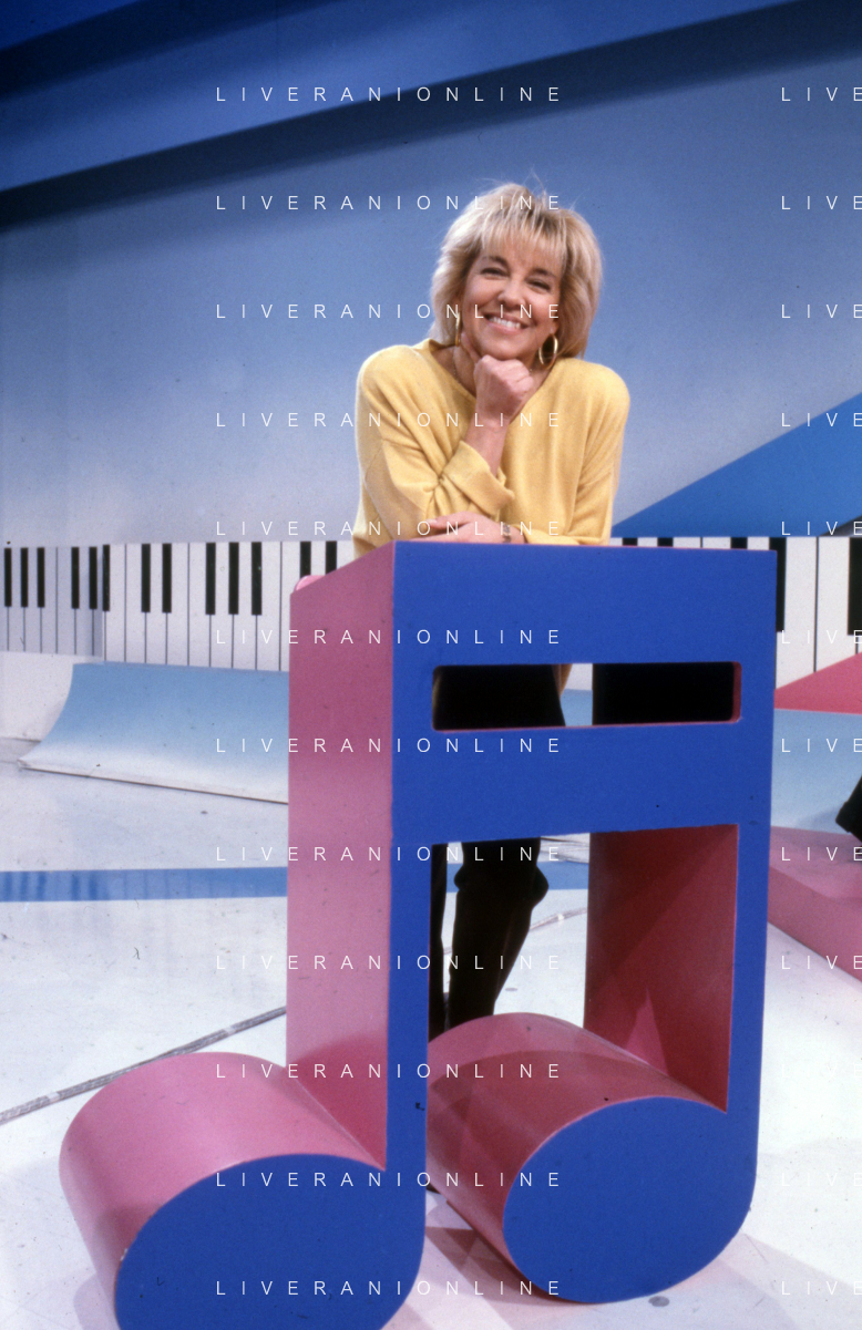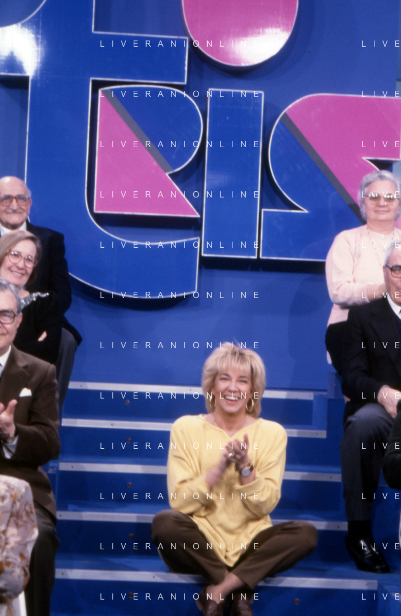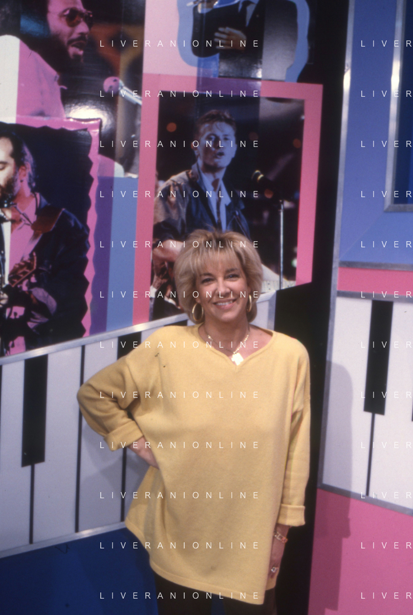 DIAP-RETROSPETTIVA WILMA GOICH CANTANTE NELLA FOTO WILMA GOICH CONDUCE LA TRASMISSIONE TELEVISIVA “TRIS“ ANNO 1990 AG ALDO LIVERANI SAS